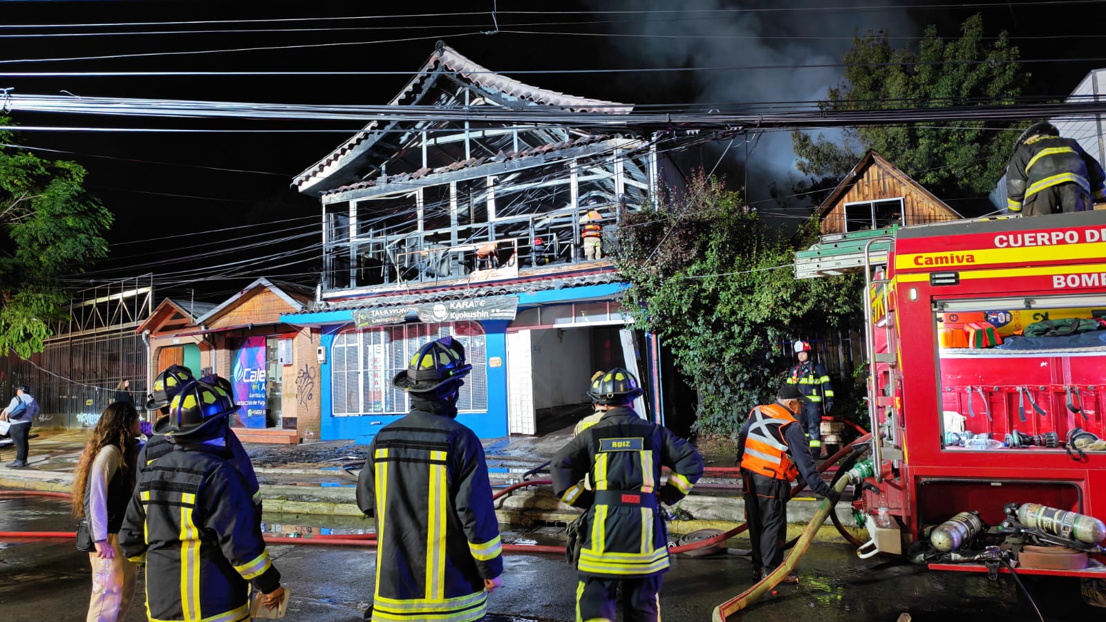 Incendio esta madrugada destruyó academia de artes marciales y afectó dos viviendas